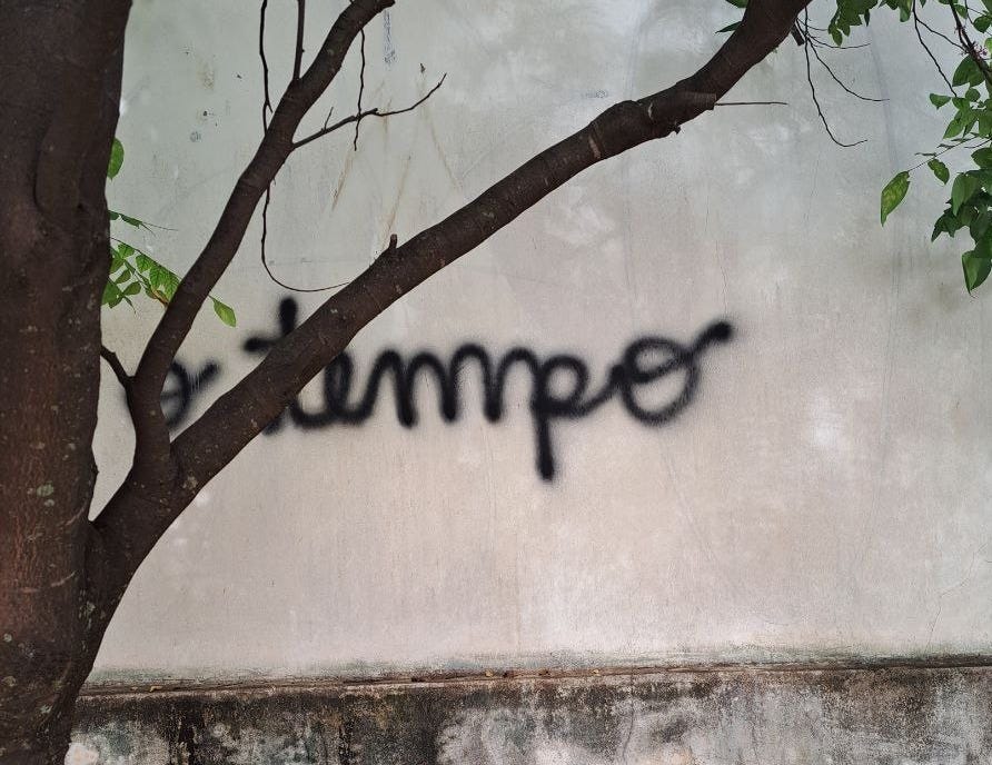 é irônico que um dos grandes trabalhos nesse período de 2024 era justamente esta pesquisa: tempo. e eu seguindo em um ritmo que não permitia me dar o tempo de entender e viver as coisas na medida que elas precisavam ser vividas. numa ansiedade e preocupação tão grandes com o futuro e com tentar "garantir" algo e "fazer acontecer" que não percebia que sobre futuro nunca há garantia alguma e que a garantia é apenas uma sensação de segurança que procuramos ter em relação à inevitável incerteza.