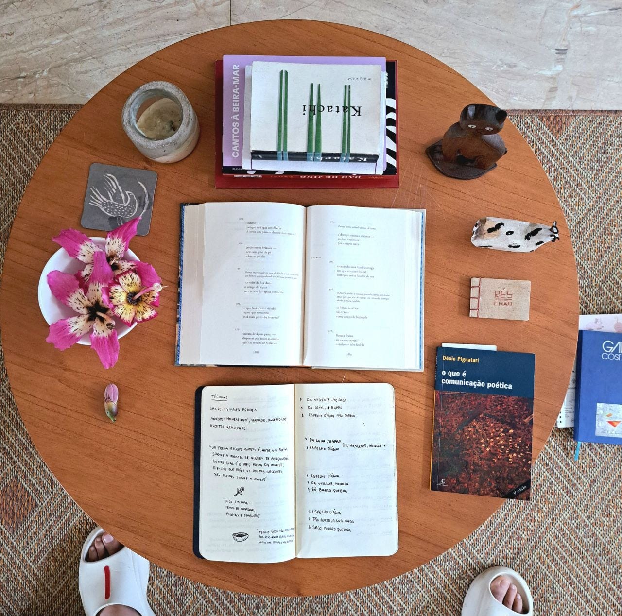 se fugi tanto da escrita dessa edição, além do cansaço, pode ser porque precisava falar sobre esse momento na minha vida. sobre um possível "erro" de rota. as idas e vindas, a desorientação e o embate comigo. e era preciso tempo para metabolizar um tanto do que estava fresco na pele. o ano que passou foi um dos mais difíceis que vivi desde a pandemia, talvez o mais difícil. quando decidi me mudar para o rio de janeiro, lá pelo final de 2022 era uma vontade de procurar novos horizontes, possibilidades e caminhos artísticos. quando de fato fiz isso na virada de 2023, fiz com coisas demais em aberto, várias delas em brasília. além disso, já vinha de seis meses em que viajei muito a trabalho e para promover o livro "profecia, recém-lançado. já estava cansada de tanto trânsito e vai e vem. o que acabou trazendo à tona uma série de questões internas e relacionais (em diferentes âmbitos de relações, mas especialmente na minha relação comigo mesma, meus anseios e medos) que estavam se amontoando prestes a ebulir. questões que eu não conseguia parar para dar atenção, ou sequer perceber, pois vinha em um ritmo acelerado, carregado e extenuante de trabalhos, projetos, vontades, urgências - tudo com uma enorme cobrança interna e um sentimento de que era pra ontem. de que eu precisava fazer acontecer logo.